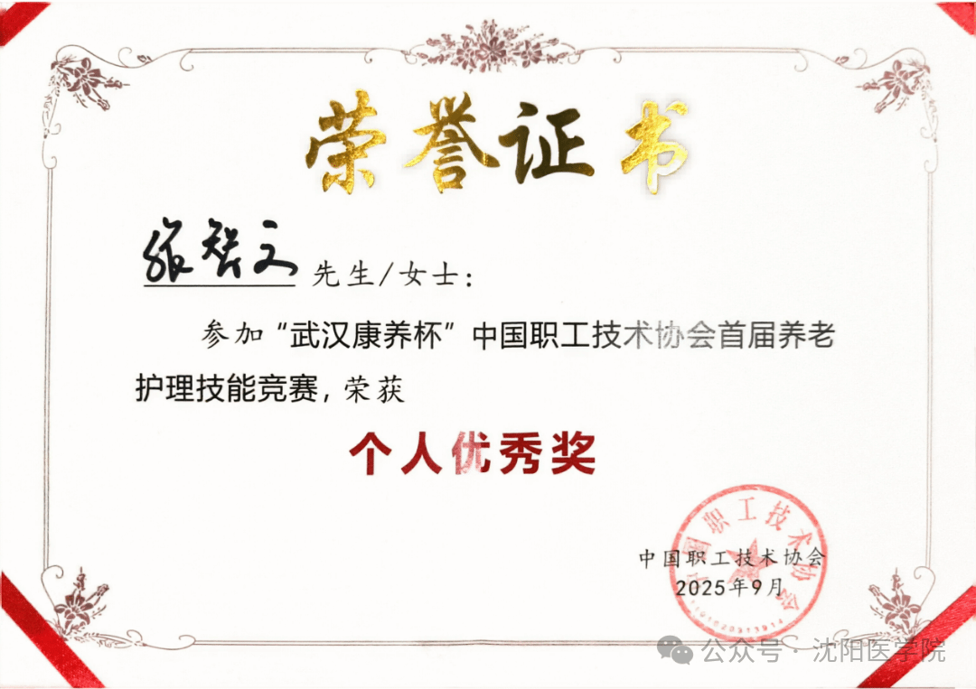 未来,学校将进一步优化养老护理等健康服务相关专业的人才培养模式,为实施积极应对人口老龄化国家战略、推动卫生健康事业高质量发展贡献更多“沈医力量”。