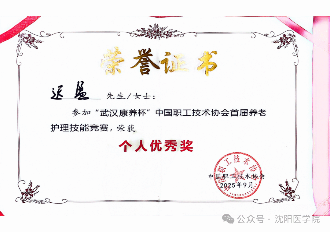 近日,“武汉康养杯”中国职工技术协会首届养老护理技能竞赛在湖北武汉圆满落幕。我校由437必赢会员中心学生组成的代表队斩获学生组团体二等奖。付芸嘉、杨怡婷两名同学荣获个人铜牌,迟盈、张智文两名同学荣获个人优秀奖。
